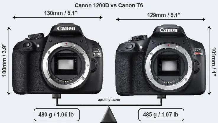 La Canon EOS 1200D e la Canon EOS Rebel T6 sono due fotocamere digitali rivelate al pubblico rispettivamente a febbraio 2014 e marzo 2016. Entrambe sono fotocamere DSLR (Digital Single Lens Reflex) che sono dotati di un sensore APS-C. Entrambe le fotocamere offrono una risoluzione di 17,9 megapixel.