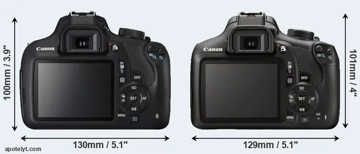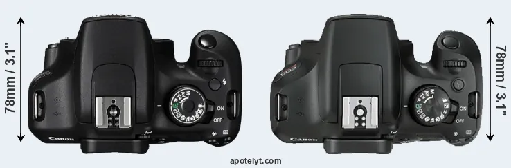 | 1. | Canon 1200D | 130 mm | 100 mm | 78 mm | 480 g | 500 | n | feb 2014 | US$ 449 | ebay.com | |
