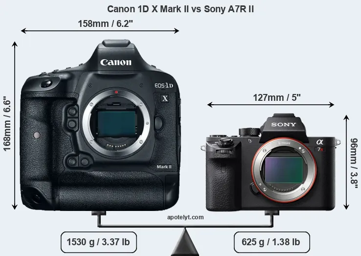 La Canon EOS-1D X Mark II e la Sony Alpha A7R II sono due fotocamere digitali rivelate al pubblico rispettivamente a febbraio 2016 e giugno 2015. Il 1DX Mark II è una fotocamera DSLR, mentre A7R II è una fotocamera mirrorless con obiettivo intercambiabile.Entrambe le fotocamere sono dotati di un sensore full frame. La Canon ha una risoluzione di 20,0 megapixel, mentre la Sony fornisce 42,2 MP.