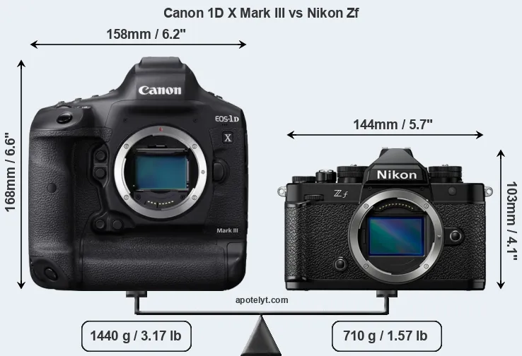 La Canon EOS-1D X Mark III e la Nikon Zf sono due fotocamere digitali rivelate al pubblico rispettivamente a gennaio 2020 e settembre 2023. Il 1DX Mark III è una fotocamera DSLR, mentre Zf è una fotocamera mirrorless con obiettivo intercambiabile.Entrambe le fotocamere sono dotati di un sensore full frame. La Canon ha una risoluzione di 20,0 megapixel, mentre la Nikon fornisce 24,3 MP.