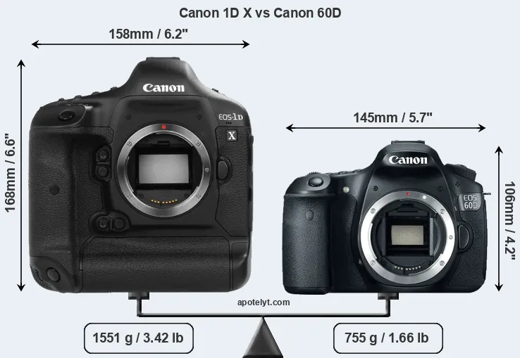Size Canon 1D X vs Canon 60D