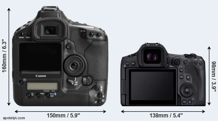 La dimensione fisica e il peso della Canon 1Ds Mark III e Canon R5 Mark II sono illustrate nel grafico sottostante. Le due fotocamere vengono visualizzate in base alle loro dimensioni relative. Tutte le dimensioni sono arrotondate al millimetro più vicino.