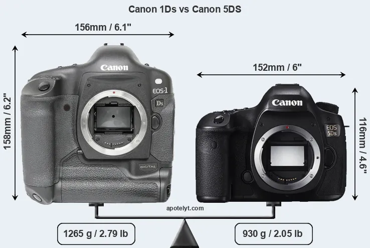 La Canon EOS-1Ds e la Canon EOS 5DS sono due fotocamere digitali rivelate al pubblico rispettivamente a settembre 2002 e febbraio 2015. Entrambe sono fotocamere DSLR (Digital Single Lens Reflex) che sono dotati di un sensore full frame. La 1Ds ha una risoluzione di 11,0 megapixel, mentre la 5DS fornisce 50,3 MP.