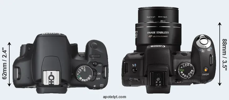 | 1. | Canon 450D | 129 mm | 98 mm | 62 mm | 524 g | 500 | n | gen 2008 | US$ 799 | ebay.com | |