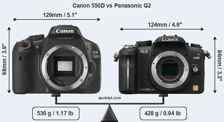 Size Canon 550D vs Panasonic G2