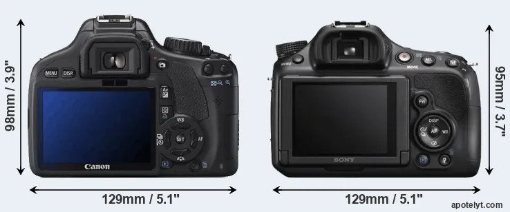 La Canon EOS 550D e la Sony Alpha SLT-A58 sono due fotocamere digitali rivelate al pubblico rispettivamente a febbraio 2010 e febbraio 2013. Entrambe sono fotocamere DSLR (Digital Single Lens Reflex) che sono dotati di un sensore APS-C. La Canon ha una risoluzione di 17,9 megapixel, mentre la Sony fornisce 19,8 MP.