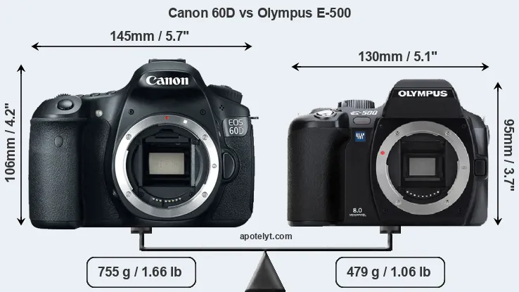 Size Canon 60D vs Olympus E-500