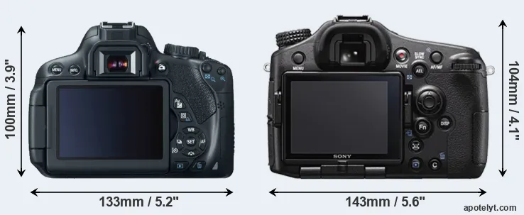 La Canon EOS 650D e la Sony Alpha SLT-A77 II sono due fotocamere digitali rivelate al pubblico rispettivamente a giugno 2012 e maggio 2014. Entrambe sono fotocamere DSLR (Digital Single Lens Reflex) che sono dotati di un sensore APS-C. La Canon ha una risoluzione di 17,9 megapixel, mentre la Sony fornisce 24,0 MP.