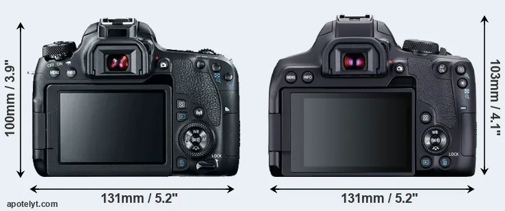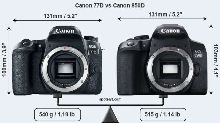La Canon EOS 77D e la Canon EOS 850D sono due fotocamere digitali rivelate al pubblico rispettivamente a febbraio 2017 e febbraio 2020. Entrambe sono fotocamere DSLR (Digital Single Lens Reflex) che sono dotati di un sensore APS-C. Entrambe le fotocamere offrono una risoluzione di 24,0 megapixel.