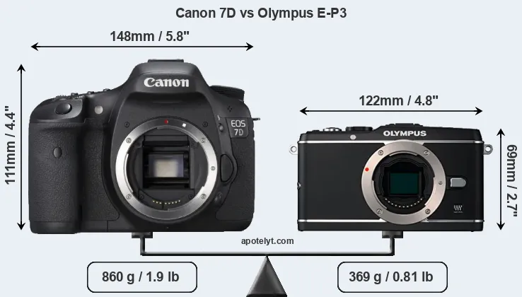 La Canon EOS 7D e la Olympus PEN E-P3 sono due fotocamere digitali rivelate al pubblico rispettivamente a settembre 2009 e giugno 2011. Il 7D è una fotocamera DSLR, mentre E-P3 è una fotocamera mirrorless con obiettivo intercambiabile.Le fotocamere sono dotati di un sensore APS-C (7D) e un sensore Quattro Terzi (E-P3). La Canon ha una risoluzione di 17,9 megapixel, mentre la Olympus fornisce 12,2 MP.