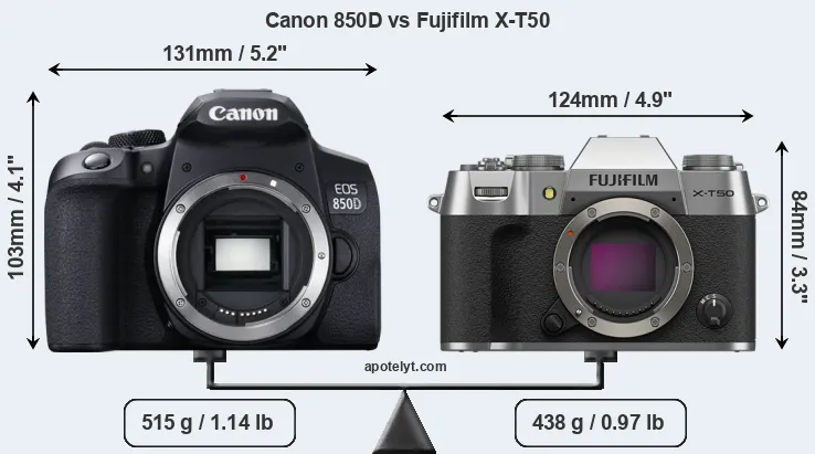 Size Canon 850D vs Fujifilm X-T50
