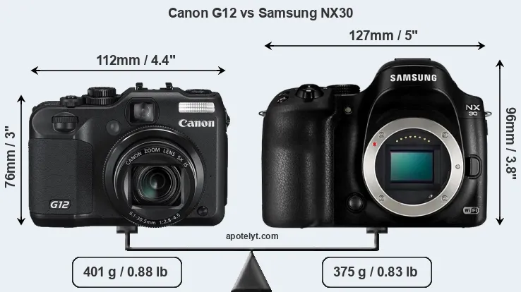 Size Canon G12 vs Samsung NX30