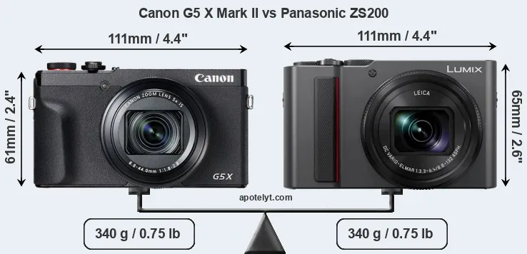 La Canon PowerShot G5 X Mark II e la Panasonic Lumix DC-ZS200 sono due fotocamere digitali rivelate al pubblico rispettivamente a luglio 2019 e febbraio 2018. Sia il G5X Mark II e il ZS200 sono fotocamere compatte con obiettivo integrato, che sono dotati di un sensore da 1 pollice. Entrambe le fotocamere offrono una risoluzione di 20,0 megapixel.