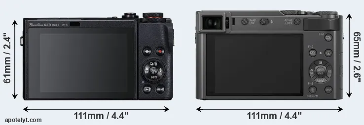 La dimensione fisica e il peso della Canon G5 X Mark II e Panasonic ZS200 sono illustrate nel grafico sottostante. Le due fotocamere vengono visualizzate in base alle loro dimensioni relative. Tutte le dimensioni sono arrotondate al millimetro più vicino.