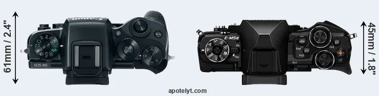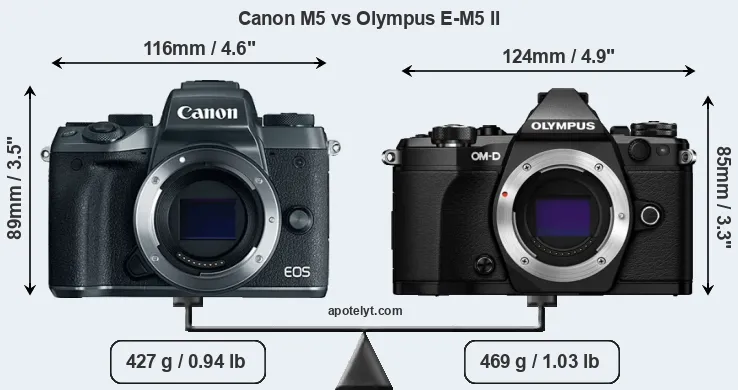La Canon EOS M5 e la Olympus OM-D E-M5 Mark II sono due fotocamere digitali rivelate al pubblico rispettivamente a settembre 2016 e febbraio 2015. Entrambe sono fotocamera mirrorless con obiettivo intercambiabile, che sono dotati di un sensore APS-C (M5) e un sensore Quattro Terzi (E-M5 II). La Canon ha una risoluzione di 24,0 megapixel, mentre la Olympus fornisce 15,9 MP.