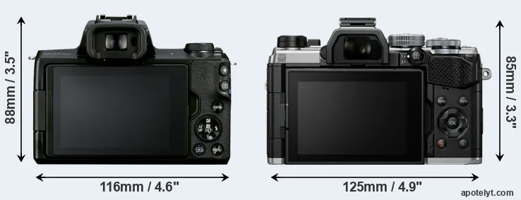 La Canon EOS M50 Mark II e la OM System OM-5 sono due fotocamere digitali rivelate al pubblico rispettivamente a ottobre 2020 e ottobre 2022. Entrambe sono fotocamera mirrorless con obiettivo intercambiabile, che sono dotati di un sensore APS-C (M50 Mark II) e un sensore Quattro Terzi (OM-5). La Canon ha una risoluzione di 24,0 megapixel, mentre la OM System fornisce 20,2 MP.