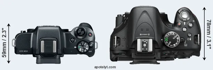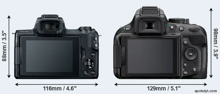 La Canon EOS M50 e la Nikon D5200 sono due fotocamere digitali rivelate al pubblico rispettivamente a febbraio 2018 e novembre 2012. Il M50 è una fotocamera mirrorless con obiettivo intercambiabile, mentre D5200 è una fotocamera DSLR. Entrambe le fotocamere sono dotati di un sensore APS-C. Entrambe le fotocamere offrono una risoluzione di 24,0 megapixel.