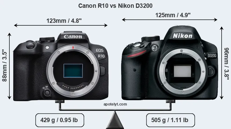 Andando oltre questa istantanea delle caratteristiche e delle caratteristiche principali, quali sono le differenze tra Canon EOS R10 e Nikon D3200? Quale dovresti comprare? Continua a leggere per scoprire come si confrontano queste due fotocamere rispetto alle dimensioni del corpo e altre caratteristiche.