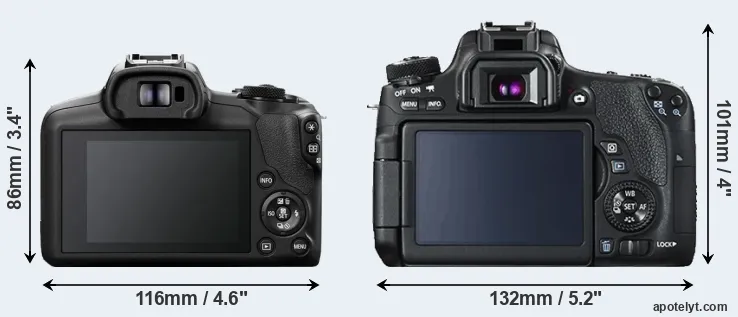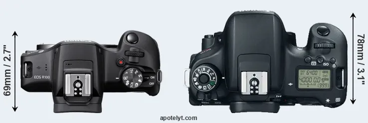 La Canon EOS R100 e la Canon EOS Rebel T6s sono due fotocamere digitali rivelate al pubblico rispettivamente a maggio 2023 e febbraio 2015. Il R100 è una fotocamera mirrorless con obiettivo intercambiabile, mentre T6s è una fotocamera DSLR. Entrambe le fotocamere sono dotati di un sensore APS-C. Entrambe le fotocamere offrono una risoluzione di 24,0 megapixel.