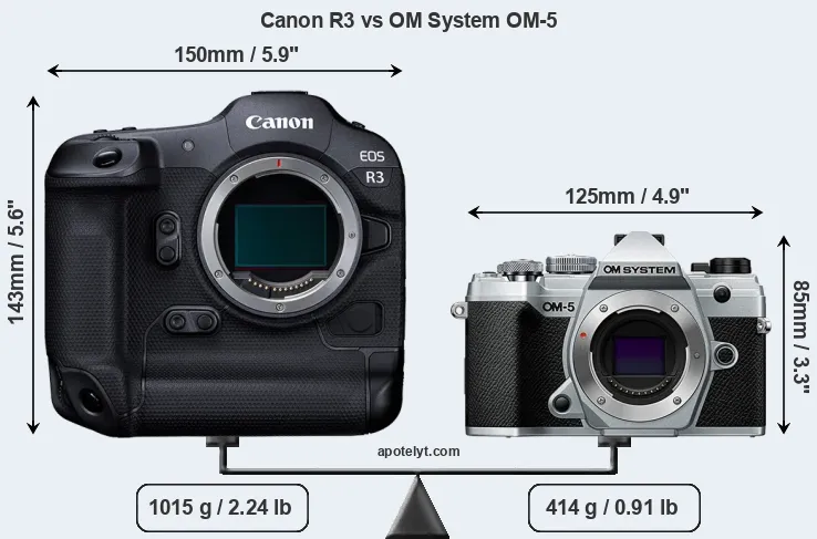 Size Canon R3 vs OM System OM-5