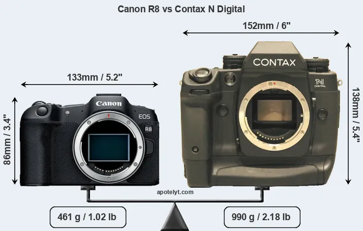 Size Canon R8 vs Contax N Digital
