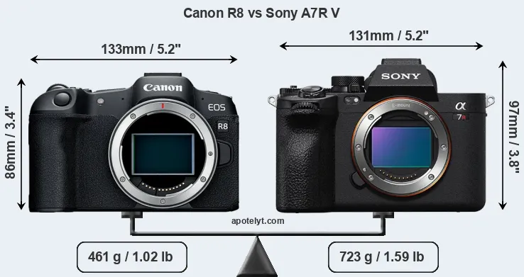 La Canon EOS R8 e la Sony Alpha A7R V sono due fotocamere digitali rivelate al pubblico rispettivamente a febbraio 2023 e ottobre 2022. Entrambe sono fotocamera mirrorless con obiettivo intercambiabile, che sono dotati di un sensore full frame. La Canon ha una risoluzione di 24,0 megapixel, mentre la Sony fornisce 60,2 MP.
