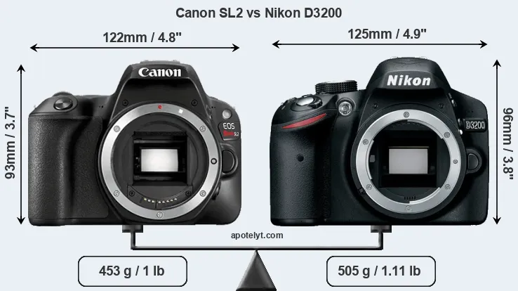 Size Canon SL2 vs Nikon D3200