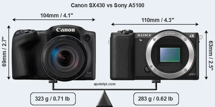 Andando oltre questa istantanea delle caratteristiche e delle caratteristiche principali, quali sono le differenze tra Canon PowerShot SX430 IS e Sony Alpha A5100? Quale dovresti comprare? Continua a leggere per scoprire come si confrontano queste due fotocamere rispetto alle dimensioni del corpo e altre caratteristiche.
