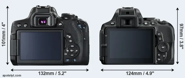 La dimensione fisica e il peso della Canon T6i e Nikon D5600 sono illustrate nel grafico sottostante. Le due fotocamere vengono visualizzate in base alle loro dimensioni relative. Tutte le dimensioni sono arrotondate al millimetro più vicino.