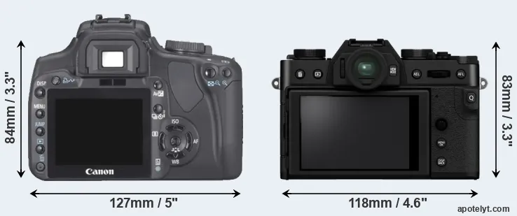 La Canon EOS Rebel XTi e la Fujifilm X-T30 II sono due fotocamere digitali rivelate al pubblico rispettivamente a agosto 2006 e settembre 2021. Il XTi è una fotocamera DSLR, mentre X-T30 II è una fotocamera mirrorless con obiettivo intercambiabile.Entrambe le fotocamere sono dotati di un sensore APS-C. La Canon ha una risoluzione di 10,1 megapixel, mentre la Fujifilm fornisce 26,0 MP.