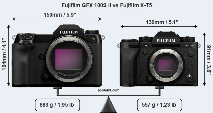 Size Fujifilm GFX 100S II vs Fujifilm X-T5