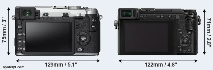 La dimensione fisica e il peso della Fujifilm X-E2S e Panasonic GX80 sono illustrate nel grafico sottostante. Le due fotocamere vengono visualizzate in base alle loro dimensioni relative. Tutte le dimensioni sono arrotondate al millimetro più vicino.