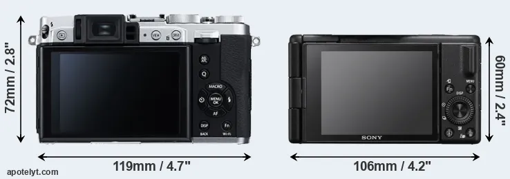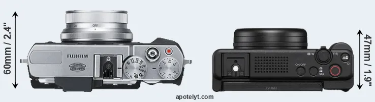 La dimensione fisica e il peso della Fujifilm X30 e Sony ZV-1 II sono illustrate nel grafico sottostante. Le due fotocamere vengono visualizzate in base alle loro dimensioni relative. Tutte le dimensioni sono arrotondate al millimetro più vicino.