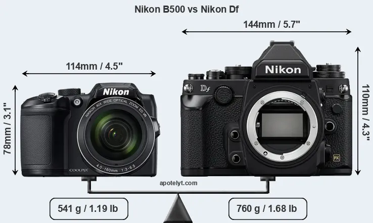 Size Nikon B500 vs Nikon Df