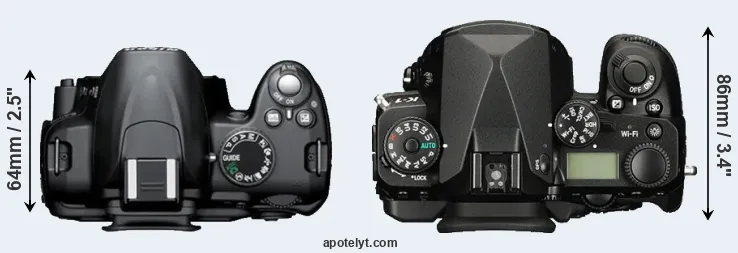 | 15. | Pentax K-1 II | 137 mm | 110 mm | 86 mm | 1010 g | 670 | Y | feb 2018 | US$ 1 999 | amazon.com | |