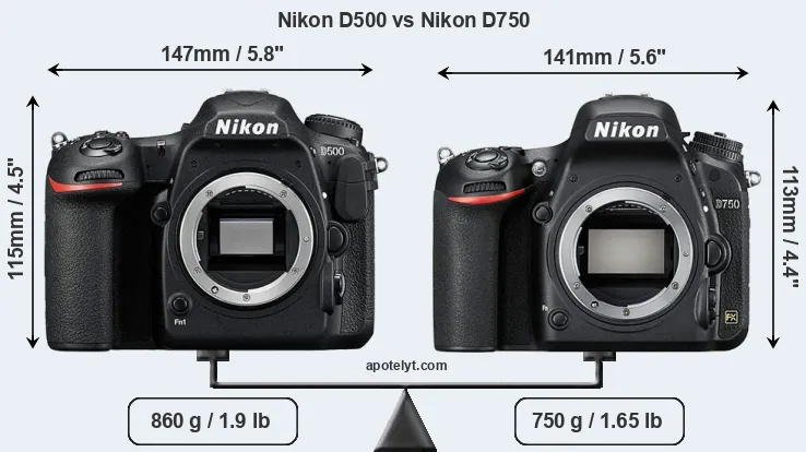 Size Nikon D500 vs Nikon D750