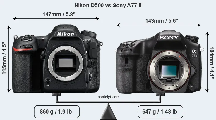 Size Nikon D500 vs Sony A77 II