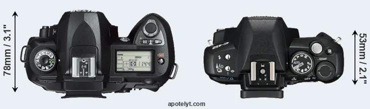 | 1. | Nikon D70s | 140 mm | 111 mm | 78 mm | 679 g | 500 | n | apr 2005 | US$ 899 | ebay.com | |