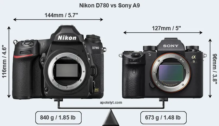 La dimensione fisica e il peso della Nikon D780 e Sony A9 sono illustrate nel grafico sottostante. Le due fotocamere vengono visualizzate in base alle loro dimensioni relative. Tutte le dimensioni sono arrotondate al millimetro più vicino.