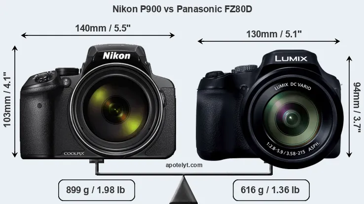 Size Nikon P900 vs Panasonic FZ80D