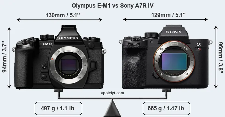 Size Olympus E-M1 vs Sony A7R IV