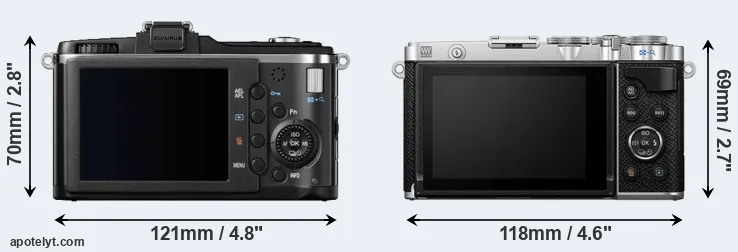 | 2. | Olympus E-P7 | 118 mm | 69 mm | 38 mm | 337 g | 360 | n | giu 2021 | US$ 799 | amazon.com | |