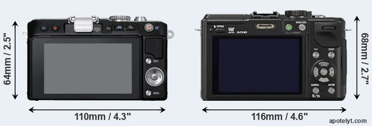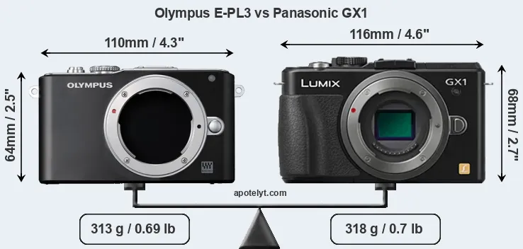 La Olympus PEN E-PL3 e la Panasonic Lumix DMC-GX1 sono due fotocamere digitali rivelate al pubblico rispettivamente a giugno 2011 e novembre 2011. Entrambe sono fotocamera mirrorless con obiettivo intercambiabile, che sono dotati di un sensore Quattro Terzi. La Olympus ha una risoluzione di 12,2 megapixel, mentre la Panasonic fornisce 15,8 MP.