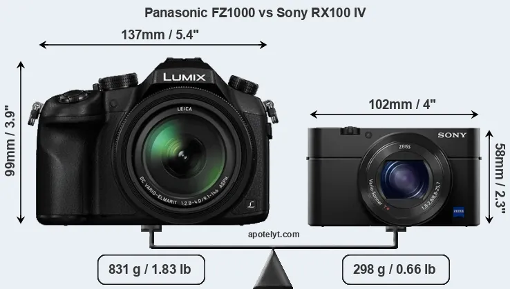 La Panasonic Lumix DMC-FZ1000 e la Sony Cyber-shot DSC-RX100 IV sono due fotocamere digitali rivelate al pubblico rispettivamente a giugno 2014 e giugno 2015. Sia il FZ1000 e il RX100 IV sono fotocamere compatte con obiettivo integrato, che sono dotati di un sensore da 1 pollice. Entrambe le fotocamere offrono una risoluzione di 20,0 megapixel.