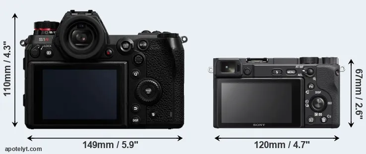 La dimensione fisica e il peso della Panasonic S1R e Sony A6400 sono illustrate nel grafico sottostante. Le due fotocamere vengono visualizzate in base alle loro dimensioni relative. Tutte le dimensioni sono arrotondate al millimetro più vicino.