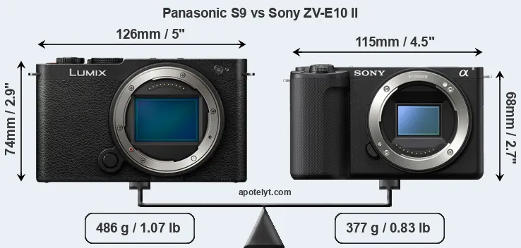 La Panasonic Lumix DC-S9 e la Sony ZV-E10 II sono due fotocamere digitali rivelate al pubblico rispettivamente a maggio 2024 e luglio 2024. Entrambe sono fotocamera mirrorless con obiettivo intercambiabile, che sono dotati di un sensore full frame (S9) e un sensore APS-C (ZV-E10 II). La Panasonic ha una risoluzione di 24,0 megapixel, mentre la Sony fornisce 25,6 MP.