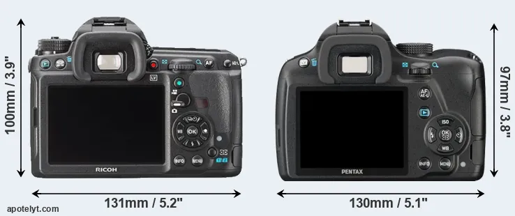 | 7. | Pentax K-5 II | 131 mm | 97 mm | 73 mm | 760 g | 740 | Y | set 2012 | US$ 1 099 | ebay.com | |