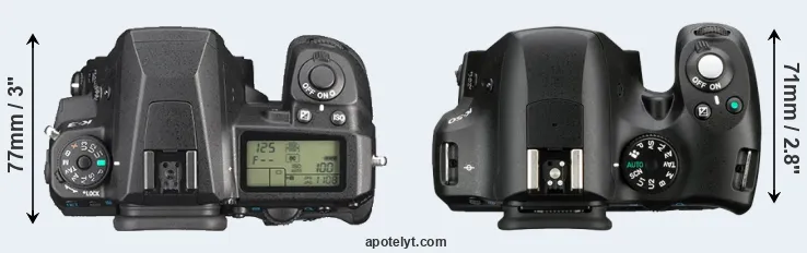 | 11. | Pentax KP | 132 mm | 101 mm | 76 mm | 703 g | 390 | Y | gen 2017 | US$ 1 099 | ebay.com | |