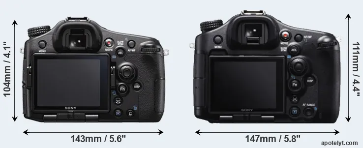 | 10. | Sony A77 | 143 mm | 104 mm | 81 mm | 732 g | 470 | Y | ago 2011 | US$ 1 399 | ebay.com | |
