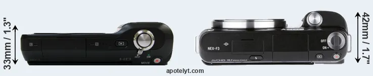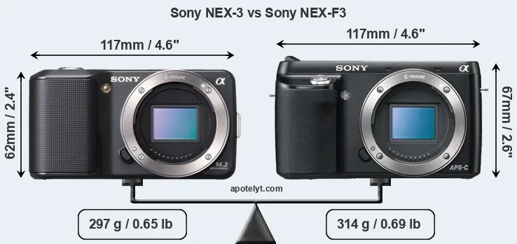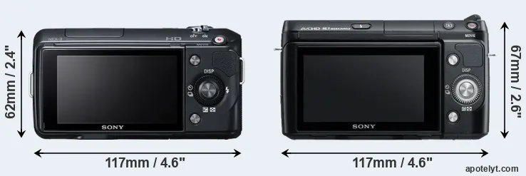 La Sony Alpha NEX-3 e la Sony Alpha NEX-F3 sono due fotocamere digitali rivelate al pubblico rispettivamente a maggio 2010 e maggio 2012. Entrambe sono fotocamera mirrorless con obiettivo intercambiabile, che sono dotati di un sensore APS-C. La NEX-3 ha una risoluzione di 14,0 megapixel, mentre la NEX-F3 fornisce 16,0 MP.